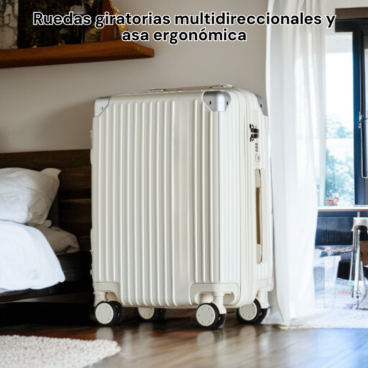 ● Ruedas giratorias multidireccionales y asa ergonómica, facilitando el transporte y brindando comodidad en aeropuertos y estaciones.