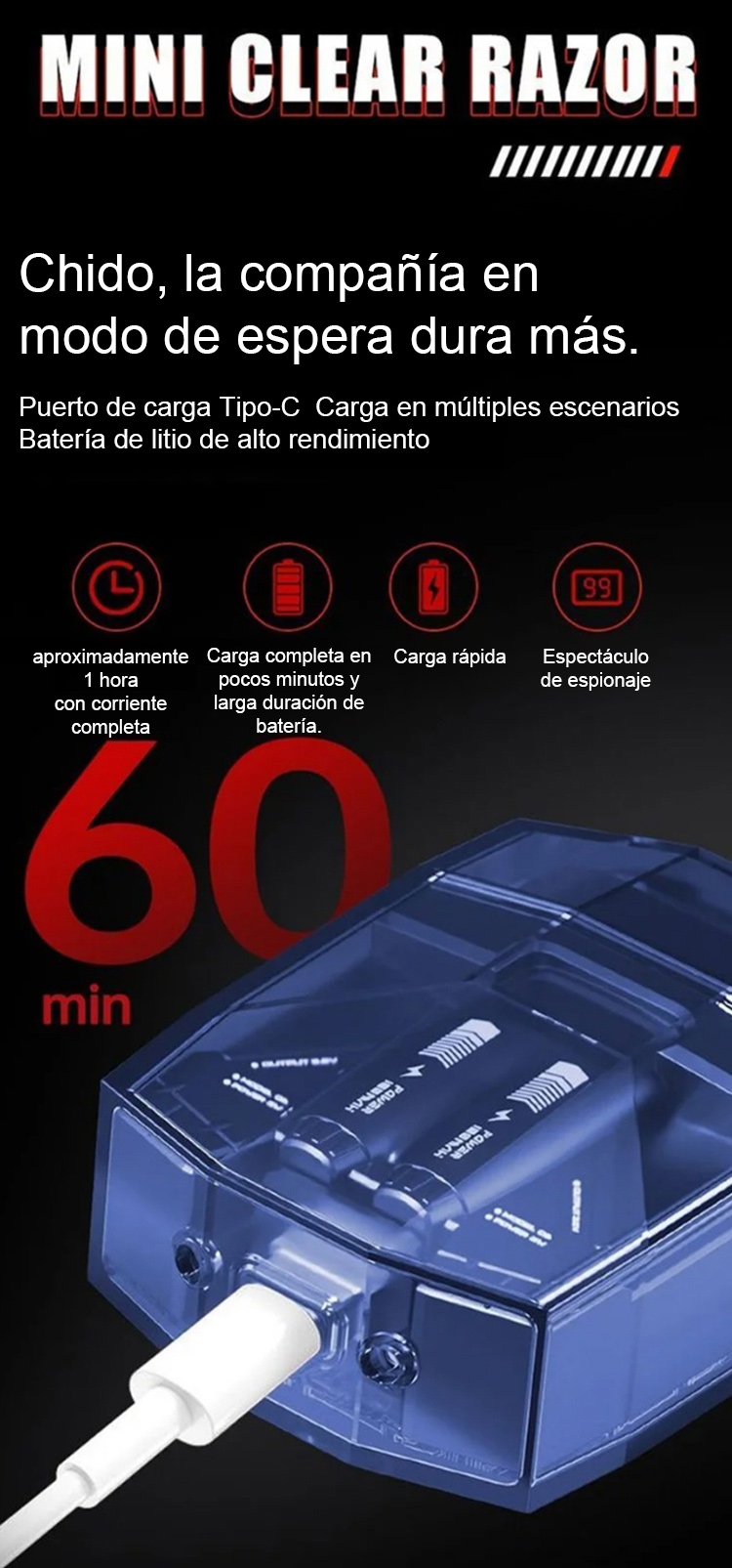 La afeitadora mecánica de moda.Afeitado limpio en 3 segundos, sin dejar manchas negras